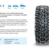 Tapio‑NK 9 isepuhastub hästi märjast lumest ja mudast ning keti eluiga saab pikendada ketti ümber pöörates.